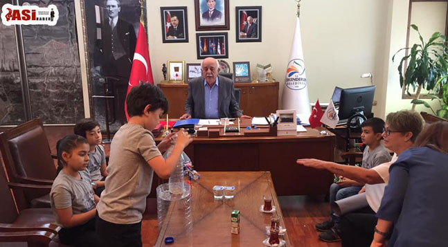 İskenderun Doğru Cevap Koleji Anasınıfı ve İlkokul öğrencileri sınıf öğretmenleri ile birlikte İskenderun Belediye Başkanı Seyfi Dingil’i ziyaret ederek hazırladıkları projeleri sundular.
