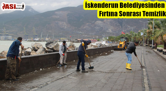 Kuvvetli lodos nedeniyle kırılan ve savrulan ağaç dalları ile çevreye savrulan plastik atık ve çöplerin yanı sıra sahil yürüyüş yolunda çalışmalarını sürdüren İskenderun Belediyesi Temizlik İşleri, Park Bahçe ve Fen İşleri Müdürlüğü ekipleri kuvvetli rüzgâr sonrası sahil kesimindeki yürüyüş yolu ve parkta çalışma yürüttü. Fırtına nedeniyle yürüyüş yoluna savrulan kum ve taşlar temizlendi.
