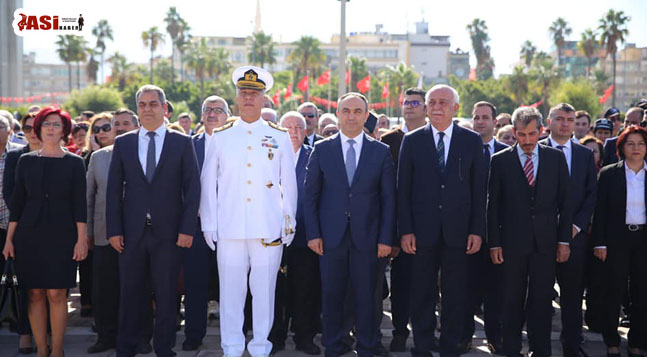 Atatürk Anıt Alanı’nda düzenlenen çelenk sunma törenine İskenderun Kaymakamı Recep Soytürk, , İskenderun Belediye Başkanı Seyfi Dingil, İskenderun Deniz Üs Komutanı Tuğamiral Ercan Kireçtepe,siyasi partilerin ilçe başkanları, meclis üyeleri, kamu kurum ve kuruluşlarının temsilcileri, muhtarlar, oda başkanları, sivil toplum kuruluşlarının temsilcileri, askeri ve sivil erkân ile çok sayıda vatandaş katıldı. Törende ilk olarak İskenderun Kaymakamı Recep Soytürk ,İskenderun Deniz Üs Komutanı Tuğamiral Ercan Kireçtepe,İskenderun Belediye Başkanı Seyfi Dingil Atatürk Anıtı’nda çelenk sundu.