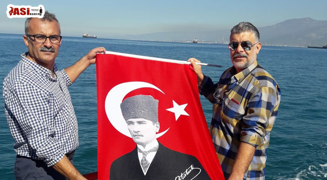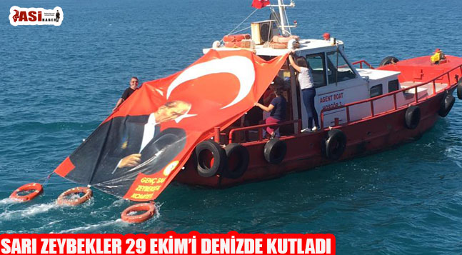 Genel Merkezi İskenderun’da olan Sarı Zeybekler Derneği bu yıl bir ilki daha gerçekleştirerek 29 Ekim Cumhuriyet Bayramını denizde Atatürk posterli Türk bayrağı açarak kutladı.