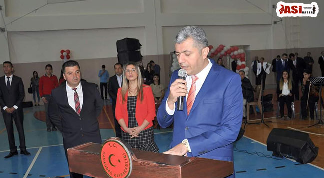 İlçe Kaymakamı Murat Kütük yaptığı konuşmada “ 28 Ekim 1923 günün akşamında Gazi Mustafa Kemal Atatürk önderliğinde kurtuluş mücadelesini veren kahramanlar yemekte buluşmuşlardı. Ulu önder “Arkadaşlar” yarın Cumhuriyeti ilan ediyoruz” dedi. Ertesi gün mecliste yaşasın Cumhuriyet nidalarıyla 1921 teşkilatı esasiye yani Anayasanın ilgili maddelerinde değişiklikler yaparak devletin yönetim şeklinin cumhuriyet olduğu kabul edildi.