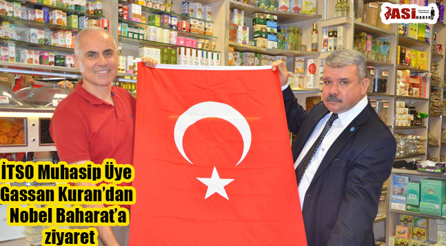 Fener Caddesi esnaflarından olan Nobel Baharat işletmecisi Metin Bülent Eker’i iş yerinde ziyaret ederek kendisine Türk bayrağı takdim eden İTSO Muhasip üye Gassan Kuran, her zaman esnafın yanında olduklarını söyledi.