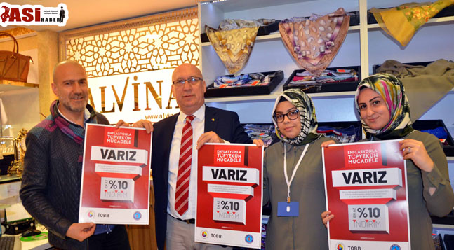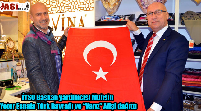 İTSO Başkan yardımcısı Muhsin Yeter’de esnafları ziyaret ederek, Türk Bayrağı ve ‘Enflasyonla Top yekûn mücadelede ‘VARIZ’ en az yüzde 10 indirim’ yazılı afişleri vererek kampanyaya destek olmaya çağırdı