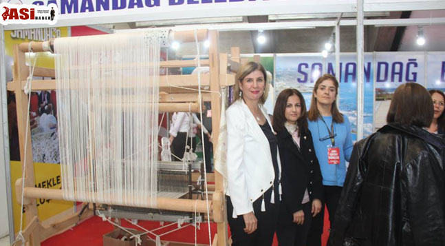 SAMANDAĞ BELEDİYESİ STANDINDA DOKUMA TEZGAHINA YOĞUN İLGİ