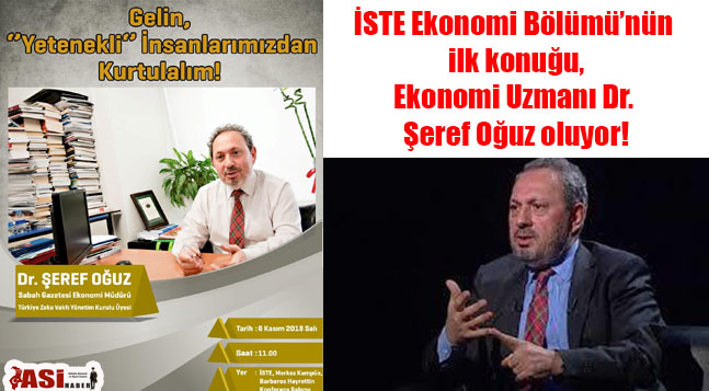 Bu yıl ilk defa öğrenci alarak eğitim-öğretime başlayan İSTE İşletme ve Yönetim Bilimleri Fakültesi Ekonomi Bölümü’nün ilk konuğu, ekonomi doktorasına da sahip olan Sabah Gazetesi Ekonomi Müdürü Şeref Oğuz oluyor. “Gelin, Yetenekli İnsanlarımızdan Kurtulalım!” gibi dikkat çekici bir konu üzerine İSTE’de bir konferans verecek olan Dr. Şeref OĞUZ, yılların tecrübe ve birikimini dinleyicilerle paylaşacak. Konferans, 6 Kasım 2018 Salı günü, Saat 11.00’da; İSTE, Merkez Kampüs, Barbaros Hayrettin Konferans Salonu’nda gerçekleştirilecek.