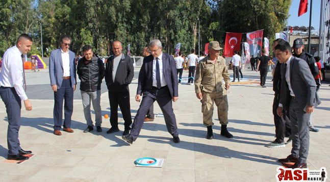 Konuşmalardan sonra gençlere yönelik çeşitli faaliyetler yürütülürken Kaymakam SARI ve beraberindeki heyet de dart yarışması ve ok atma yarışmalarına iştirak ettiler.