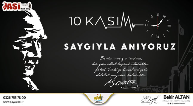 Payas Belediye Başkanı Bekir Altan, Atatürk’ün ölüm yıl dönümü sebebiyle mesaj yayınladı.