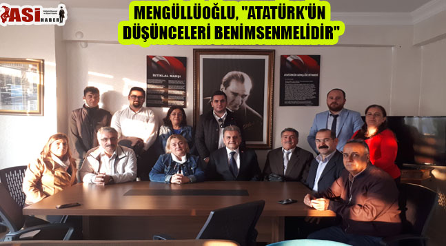 ADD Başkanı Kezban Kuran tarafından karşılanan Mengüllüoğlu, ziyarette yaaptığı konuşmasında, “Bulunduğumuz dönem itibariyle Atatürk’ü sevmemiz yeterli değildir. Atatürk’ün düşüncelerini tepeden tırnağa benimseyen kişi gerçek bir Atatürkçü’dür. Bugün Türkiye’nin ekonomisinden sosyal yaşama kadar her alanda kurtuluşunun yolu birebir Atatürk politikalarının işlevleri ile mümkndür. Toplumun ayrıştırılmadan her kesimine bu aktarılmalı ve birlik beraberlik ile hareket edilmelidir.” dedi.