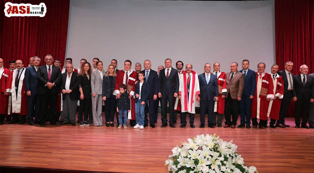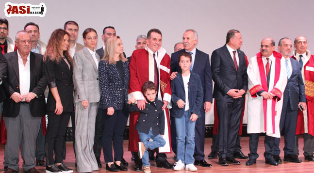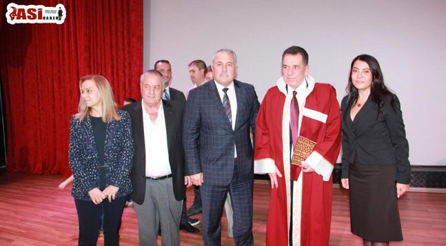 Açılış konuşmalarının ardından Recep Atakaş’a MKÜ Rektörü Prof. Dr. Hasan Kaya tarafından Fahri Doktora Beratı verilerek cübbe giydirildi.