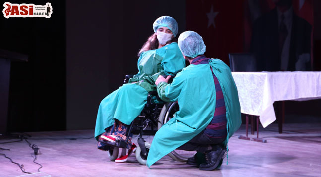 Konferansın ardından organ nakli bekleyen bir hastanın yaşadıkları sıkıntıları sahnede sergileyen Hatay Kent Konseyi Gençlik Meclisi üyeleri, insanların organ nakli konusunda daha duyarlı olmaları konusunda sosyal içerikli mesajlar verdi.
