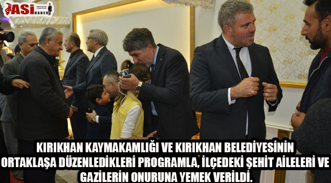Kırıkhan Kaymakamlığı ve Kırıkhan Belediyesinin organizasyonuyla Kırıkhan’daki Şehit Aileleri ve Gazilerimizin sorunlarını dinleyip onlara moral ve motivasyon vermek üzere Platin Düğün Salonunda akşam yemeği verildi.