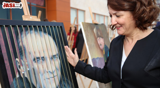HATMEK eğitmenlerinin sergilediği rölyef, karakalem ve yağlı boya çalışmalarından oluşan Ulu Önder Mustafa Kemal Atatürk’ün resimleri vatandaşlar tarafından yoğun ilgi gördü.