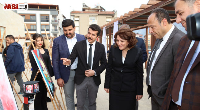 Sergi sonunda Prof. Dr. Nazan Savaş ve Başkan Vekili Matkap, resim kursu eğitmenleri Ercan Delioğlan ve Burcu Oktay’a emeklerinden dolayı teşekkür ederek çiçek takdim etti.