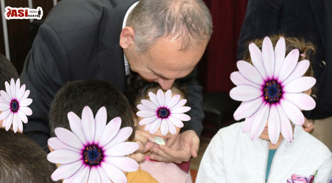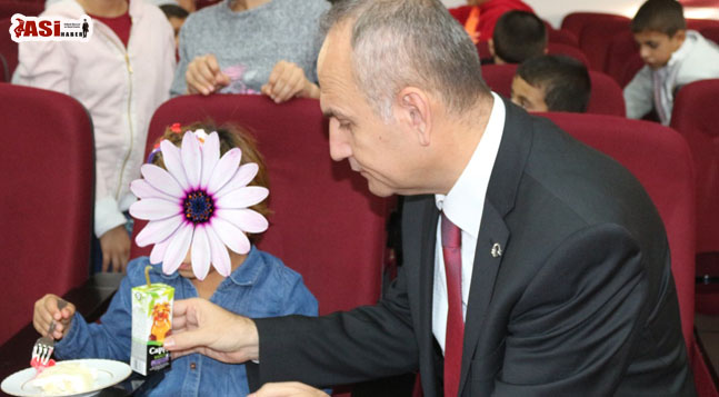 Günün anlam ve önemine yönelik özel bir pasta da yaptıran Kaymakam Yönden, olağan pasta kesimi yapmaktansa çocuklar ile pasta etrafında toplanarak parmaklama şeklinde çocuksu bir davranış sergileyerek bu özel günün mutluluğunu paylaştılar.