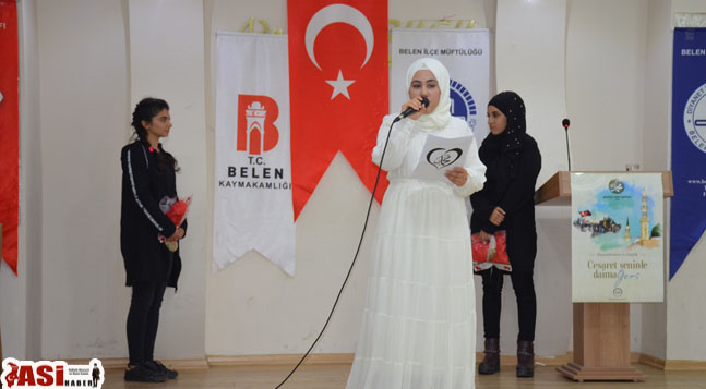 Program, Saygı duruşu ve İstiklal Marşının okunması ve akabinde Yaylakent Camii İmam Hatibi Mehmet KART’ın okuduğu Kur’anı Kerim tilaveti ile başladı. İlçe Müftüsü Mehmet Seri DOĞRU’nun açılış konuşması, sinevizyon gösterimi, İl Müftüsü Hamdi KAVİLLİOĞLU’nun “Peygamberimiz ve Gençlik” konulu konferansı, Mevlid’i Nebi haftası dolayısıyla İlçe Müftülüğünce liselerarası “Naat Okuma” yarışmasında birinci olan Belen Anadolu İmam Hatip Lisesi öğrencilerinden Elmas YILDIRAY’ın şiirini okuması ile devam ettirilerek, yarışmada dereceye giren öğrencilere ödüllerinin verilmesi ile tamamlandı.