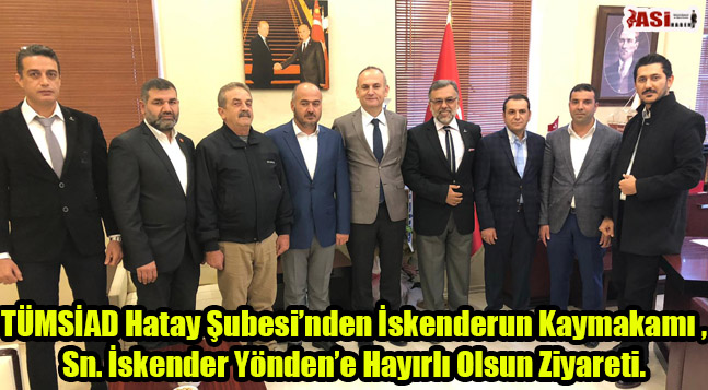 TÜMSİAD Hatay Şube Başkanı Doğan Gülsüren ve Yönetim Kurulu Üyeleri; Dr.Uğur Feriz, Yönetmen Ümit Sıkar, Antik İzolasyon Mehmet Tümkaya, İzci İnşaat Abdulhakim İzci, Adem Usta Simit Dünyası Adem Gökdoğan, By Altun Halı Mobilya Mustafa Altun, İskenderun Kaymakamı Sn. İskender Yönden’ e hayırlı olsun ziyaretinde bulundu.