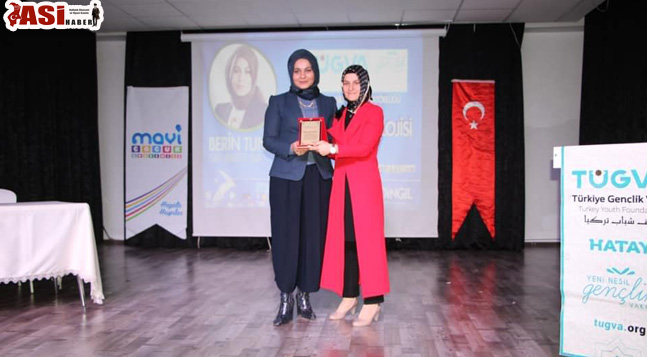 Son olarak Türkiye Gençlik Vakfı Hatay Kadın ve Aile İl koordinatörü Zeynep Soylu panele katkılarından dolayı Yazar Berin Tuncel’e ve İskenderun Belediye Başkanı Seyfi Dingil’in eşi ve +1 Engelsiz İskenderun Derneği Başkanı Feray Dingil’e plaket takdim etti.