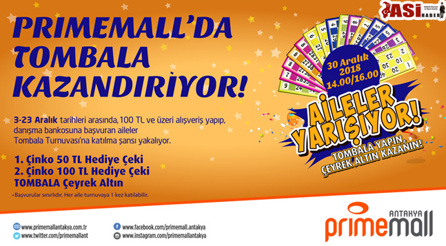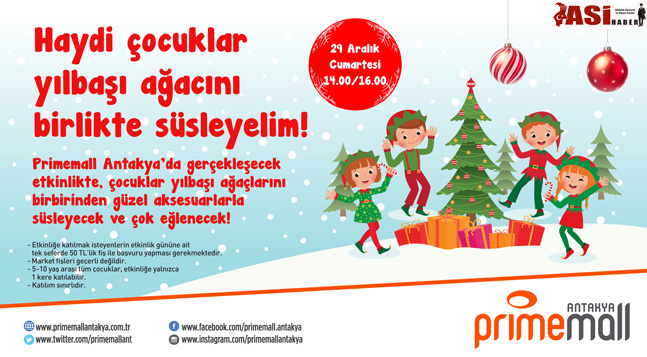 Primemall Antakya’nın ilk sürprizi minik ziyaretçileri için. 29 Aralık Cumartesi günü minikler yılbaşı ağacı atölyesi ile ağaçları dilediği gibi süsleyip o ağaçların sahibi olacak. 30 Aralık Pazar günü yılbaşının değişmez eğlencesi Primemall Antakya’nın geleneksel yarışması Tombala ile aileler kıyası yarışıp doyasıya eğlenecekler. Primemall Antakya Tombala yarışmasında 1. Çinko yapan ziyaretçilerine 50 TL, 2. Çinko yapan ziyaretçilerine 100 TL ve Tombala yapan ziyaretçilerine Çeyrek Altın hediye ediyor. Eğlence bununla da sınırlı değil, Primemall Antakya’nın son sürprizi saat 18.00 ve 19.00’da Noel Baba Bandosu.