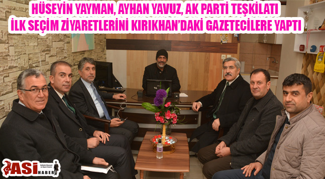 Hatay Milletvekili Sn.Hüseyin Yayman, Belediye Başkanı Ayhan Yavuz, İlçe Başkanı Ömer Erdal Çelik ve yönetim kurulu üyeleri 31 Mart Mahalli İdareler seçim çalışmaları kapsamında ilk ziyaretlerini Kırıkhan’da faaliyet gösteren Yerel Medya sahiplerine yaptı.