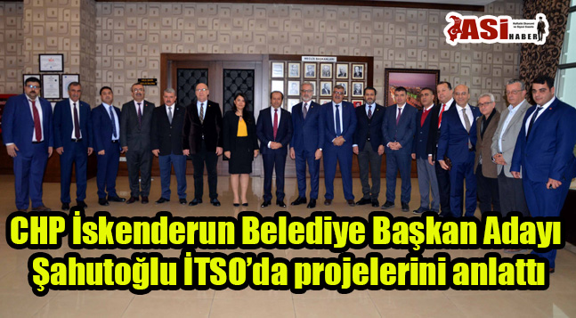 CHP İskenderun Belediye Başkanı Yılmaz Şahutoğlu ve İlçe yönetiminin ziyaretinde, İTSO Başkanı Levent Hakkı Yılmaz, İTSO Meclis Başkanı Okan Belli, İTSO Başkan yardımcısı Muhsin Yeter, İTSO Muhasip üye Gassan Kuran, İTSO yönetim kurulu üyeleri Selma Yılmaz, Yusuf Yılmaz ve Hıdır Güneş yer aldı.