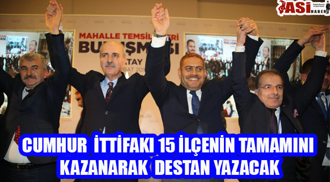 Hatay’da Büyükşehir Belediyesi ile 15 ilçenin tamamında belediye başkanlıklarını kazanacaklarını belirten Kurtulmuş, “Cumhur İttifakı ile birlikte yolumuza devam edeceğiz ve büyük bir destan yazmış olacağız.” diye konuştu.