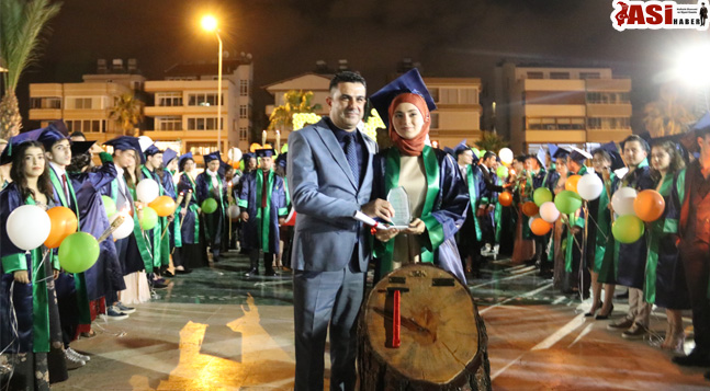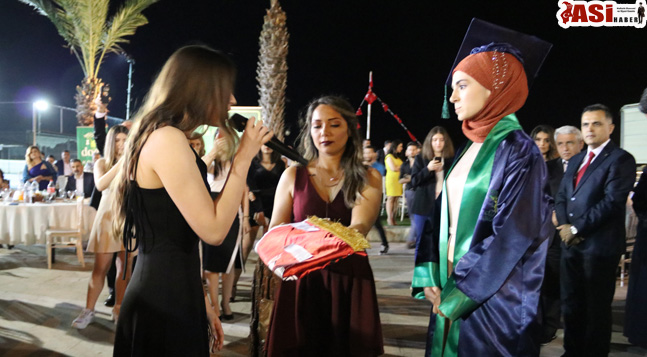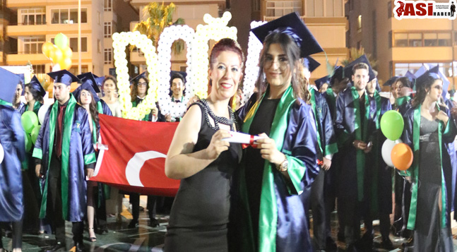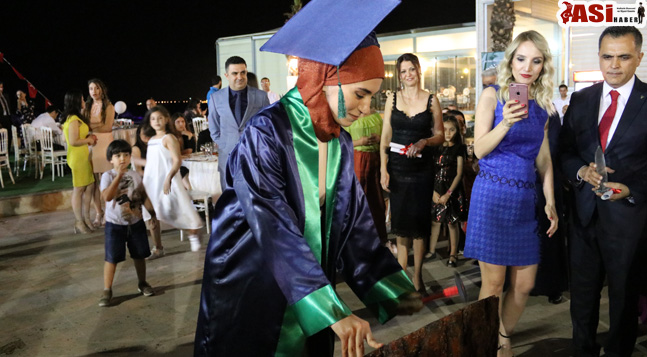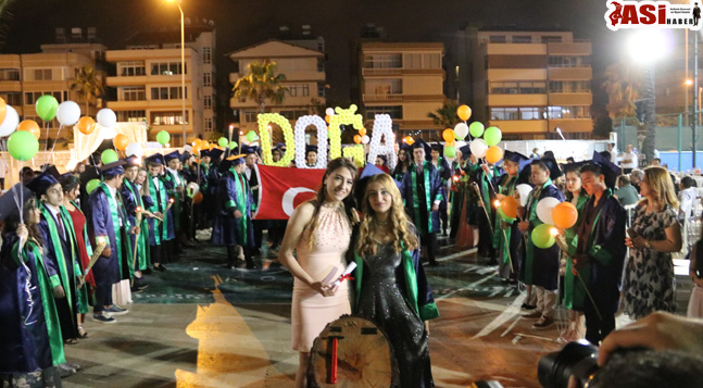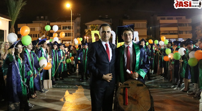 Yelken Kulübünde düzenlenen mezuniyet töreni öğrencilerin ellerinde balon ve meşale eşliğinde görkemli bir giriş yapmasıyla başladı. Mezun öğrencilerin isimleri tek tek okunarak alkışlar eşliğinde diplomalarını aldılar.