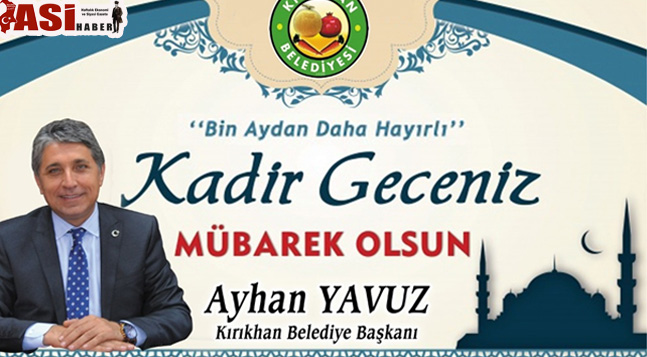 Kırıkhan Belediye Başkanı Ayhan YAVUZ, 31.Mayıs Cuma gecesini, 01 Haziran’a Cumartesine bağlayan gece ibadet ve dualarla idrak edeceğimiz mübarek Kadir gecesi dolayısıyla yazılı bir mesaj yayınladı.