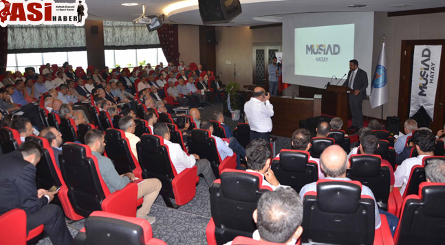 Panelin açılış konuşmasını yapan MÜSİAD Hatay Şube Başkanı Abdullah Bozatlı; (MÜSİAD)  Hatay Şubesi yönetimi olarak müspet konularda memleketimize hizmet etmek için doğru zamanda doğru işler yapmanın gayreti içerisinde olduk. Sanayi ve tarımla ilgili, lojistikle ilgili projelerimiz vardı. Bu projeleri bir yere getirmek için çalışmalar yapmanın gayreti içerisinde olduk. Kurulduğu günden bu yana memleketin dertleri ile dertlenmiş bir Derneğimiz var. Amerika’da kurulacak toplantı ile ilgili projelerimiz vardı. Bu projemizi MÜSİAD 2.Dönem Genel Başkanımız Ali Bayramoğlu’na ve İTSO Başkanımız Levent Hakkı Yılmaz’a anlattık. Bu projenin hayata geçirilmesi noktasında girişimler başlatıyoruz. Bu gün de bölgemiz iş insanlarına bu projeyi en yetkili kişiler tarafından anlatılacaktır.” Şeklinde konuştu.