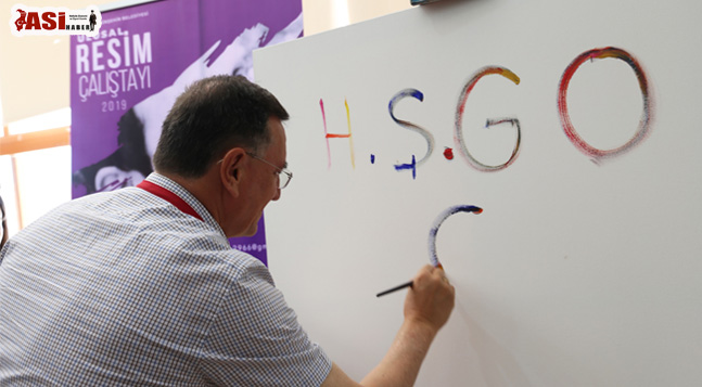 Çalıştayın ilk fırça darbesini vurmak üzere kendisine sunulan fırçayla çalıştayı başlatan Başkan Savaş, tuvale “Her Şey Çok Güzel Olacak” yazısını yazarak altına da kendi imzasını attı.