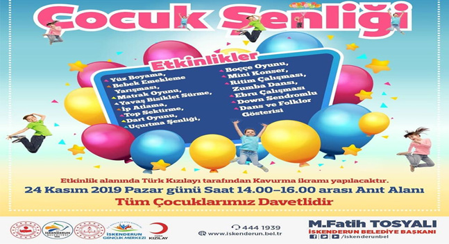 Geleceğimizin teminatı olan çocuklara gönüllerince eğlenecekleri bir program hazırladıklarını belirten Başkan Fatih Tosyalı,” Şölen havasında yapılacak olan şenlikte çocuklar için Yüz Boyama, Bebek Emekleme Yarışması, Matrak Oyunu, Yavaş Bisiklet Sürme, İp Atlama, Top Sektirme, Dart Oyunu, Boccee Oyunu, Mini Konser, Down Sendromlu Dans Gösterisi ve çocukların güzel bir gün geçirebilmeleri için eğlenceli yarışmalar yer alacak” dedi.