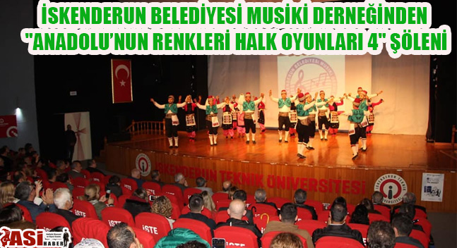 İskenderun Belediyesi Musiki Derneği düzenlemiş olduğu konser ve halk oyunları şölenlerine devam ediyor. İskenderun Belediyesi Musiki Derneği Halk Dansları Topluluğu’nun Anadolu’nun Renkleri halk oyunları şöleninin bu yıl dördüncüsü İSTE Mustafa Yazıcı Devlet Konservatuarında düzenledi.