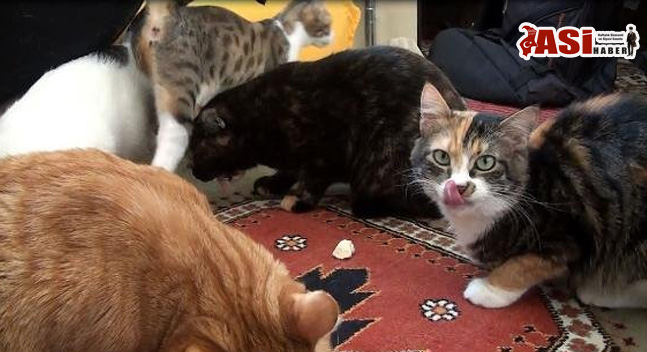 Kedilere bakmaya 5 yıl önce başlayan Ayrık, şu an iki odalı evinde tam 17 kedi ile birlikte yaşıyor.