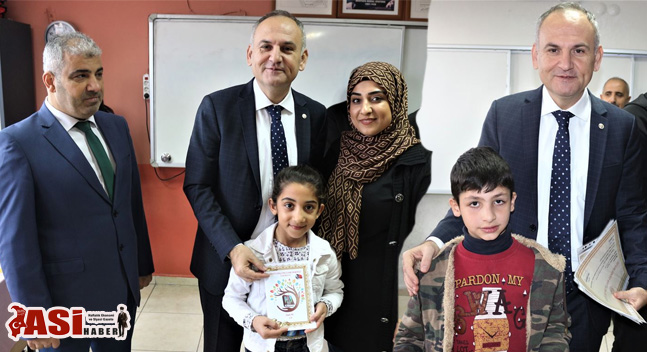 Kaymakam İskender Yönden ve beraberindeki Belediye Başkanı M. Fatih Tosyalı ile birlikte öğrencilerimizin karnelerini dağıtmalarının akabinde her birine ikişer adet olmak üzere okulun tüm öğrencilerine dağıtılmak üzere lunapark biletlerini de takdim ederek, yarıyıl tatilinin mutluluğunu pekiştirdiler.