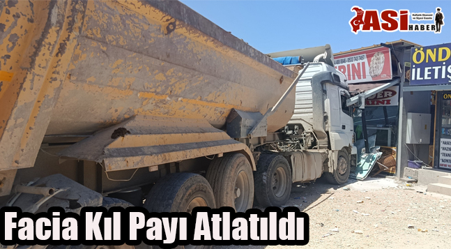 Hatay’ın merkez ilçesi Antakya’da facia kıl payı atlatıldı. Kontrolden çıkan toprak yüklü hafriyat kamyonu yol kenarındaki işyerlerine girmeye ramak kala durdu. Kazada şans eseri ölen yada yaralanan olmadı.