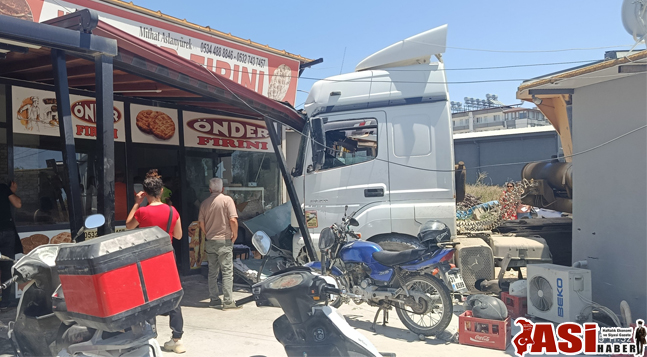 Olay Antakya çevre yolunda meydana geldi. Fren sistemi arızalanan bir hafriyat kamyonu kontrolden çıktı. Yolda savrulan toprak yüklü kamyon, yol kenarındaki prefabrik işyerlerine çarparak durabildi. İşyerlerine girmeye ramak kalasıya kamyonu durdurmayı başaran sürücü böylece olası bir facianın da önünde geçmiş oldu. Kazada işyerlerinde maddi hasar meydana gelirken, herhangi bir yaralanma yaşanmadı.