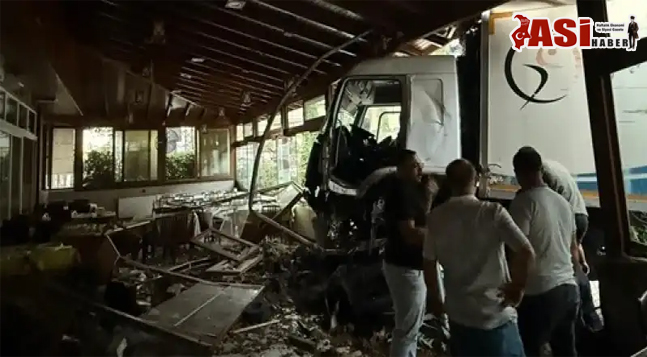 Bir süre ters yönde ilerleyen kamyon, park halindeki 31 AGR 456 plakalı vidanjöre ve ardından bir restorana çarparak durabildi.