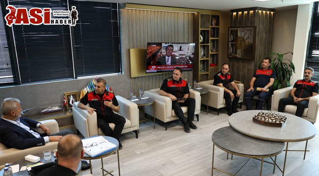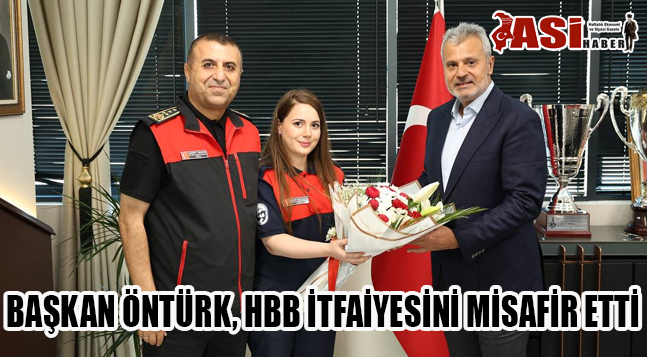 HBB Başkanı Mehmet Öntürk, makamında ağırladığı İtfaiye Dairesi yönetici ve personellerine özverili çalışmalarından dolayı teşekkür edip hediyeler takdim etti.