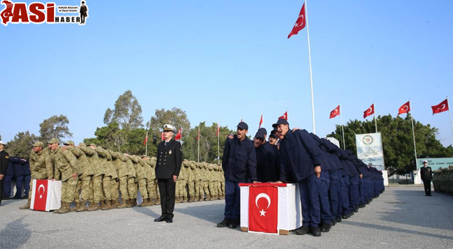 Akdeniz Bölge Komutanı Tuğamiral Soner Kazankaya’nın askerleri ve ailelerini selamlamasının ardından katılımcılar saygı duruşunda bulundu, İstiklal Marşı’nı okudu.