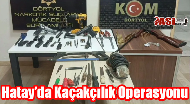 Edinilen bililere göre Hatay Emniyet Müdürlüğü ekiplerince kaçakçılık olaylarına yönelik yürütülen çalışmalar kapsamında Dörtyol ilçesine bağlı Yeşilköy Mahallesi’nde bulunan bir adreste operasyon düzenlendi. İkamette yapılan aramada; Daralı ağırlığı 0.35 gram metamfetamin maddesi, 1 adet ruhsatsız tabanca, 1 adet kurusıkı tabanca, 1 adet av tüfeği, 9 adet şarjör, 4 adet namlu, 1 adet silah gövdesi, 1 adet sürgü, 8 adet icra yayı,142 adet fişek,1 adet mengene, 2 adet kumpas, 3 adet keski, 1 adet matkap, 1 adet spiral makinası, 31 adet silah yapımında kullanılan çeşitli malzeme ele geçirildi.