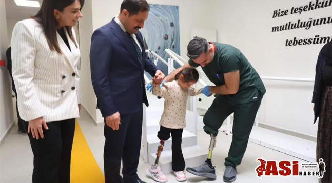 Yüksek Teknolojili Protez Ortez Üretim ve Rehabilitasyon Ünitesi’nde kendisine özel olarak yapılan Barbie çıkarmalı proteziyle ilk adımlarını atan Zeynep’in elinden tutan Hatay Valisi Mustafa Masatlı, küçük kızın yeni hayatındaki ilk adımlarına eşlik etti.