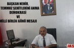 Başkan Nehir:” Ülkemizin en kara günlerinden biri olan 15 temmuz darbe girişiminin ardından 2…