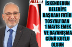 İskenderun Belediye Başkanı Fatih Tosyalı, 1 Mayıs Emek ve Dayanışma Günü’nün alın…